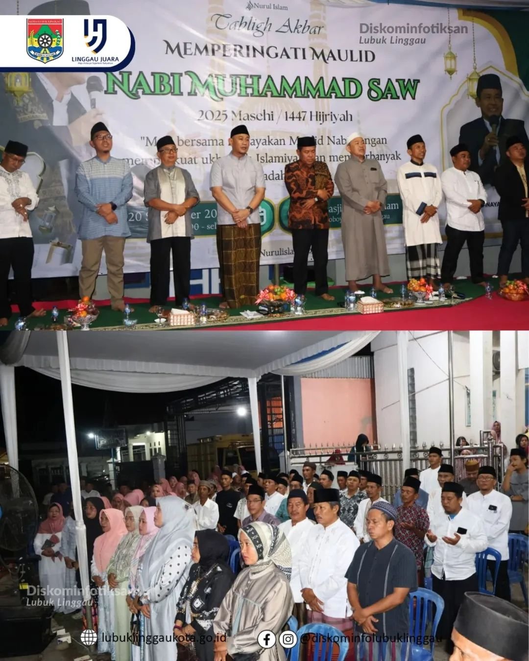 LUBUK LINGGAU-Wali Kota Lubuk Linggau, H Rachmat Hidayat menghadiri peringatan Maulid Nabi Muhammad SAW di Masjid Nurul Islam, Jalan Kemuning RT. 3, Kelurahan Jogoboyo, Kecamatan Lubuk Linggau Utara II, Sabtu (20/9/2025).